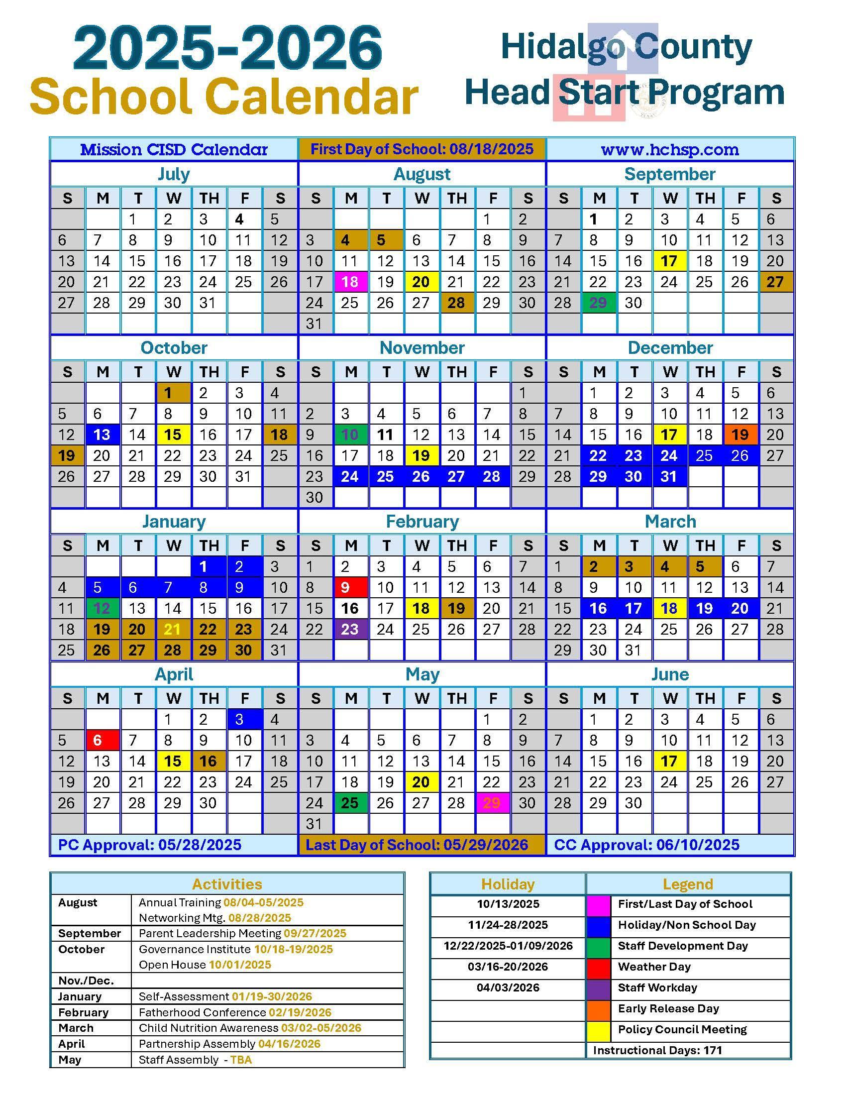 HCHSP Administration Calendar