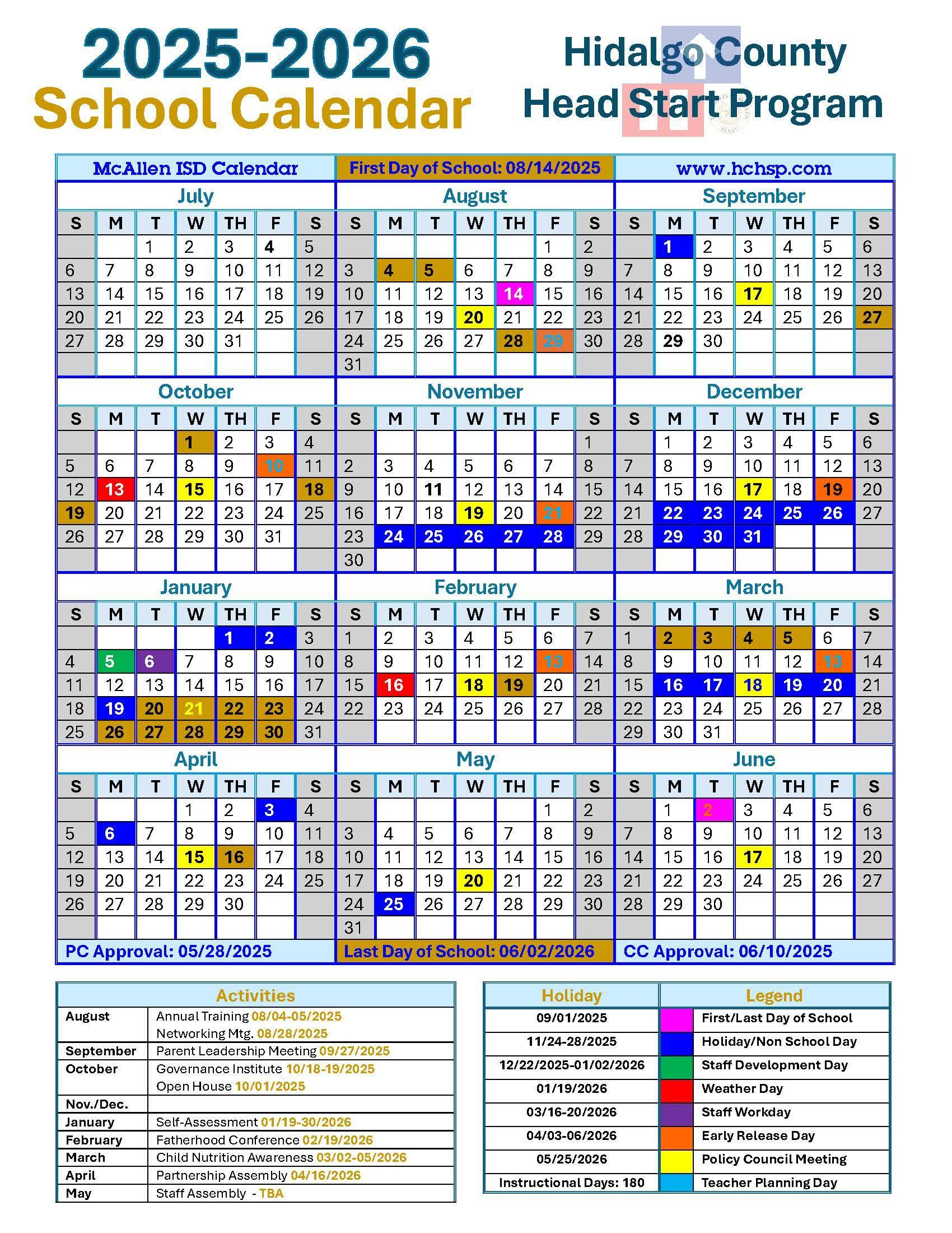 HCHSP Administration Calendar